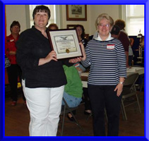 Jeanne Varney presenting an Honorary Graniteer Membership Certificate to Dottie Healey for outstanding services.